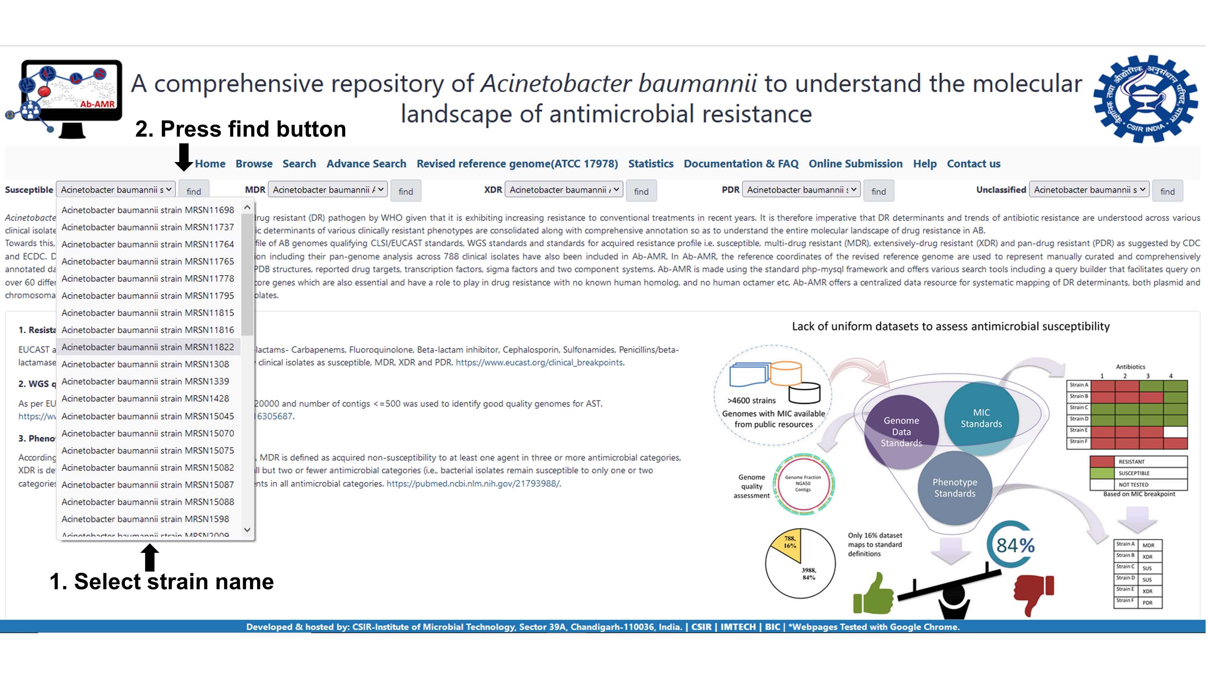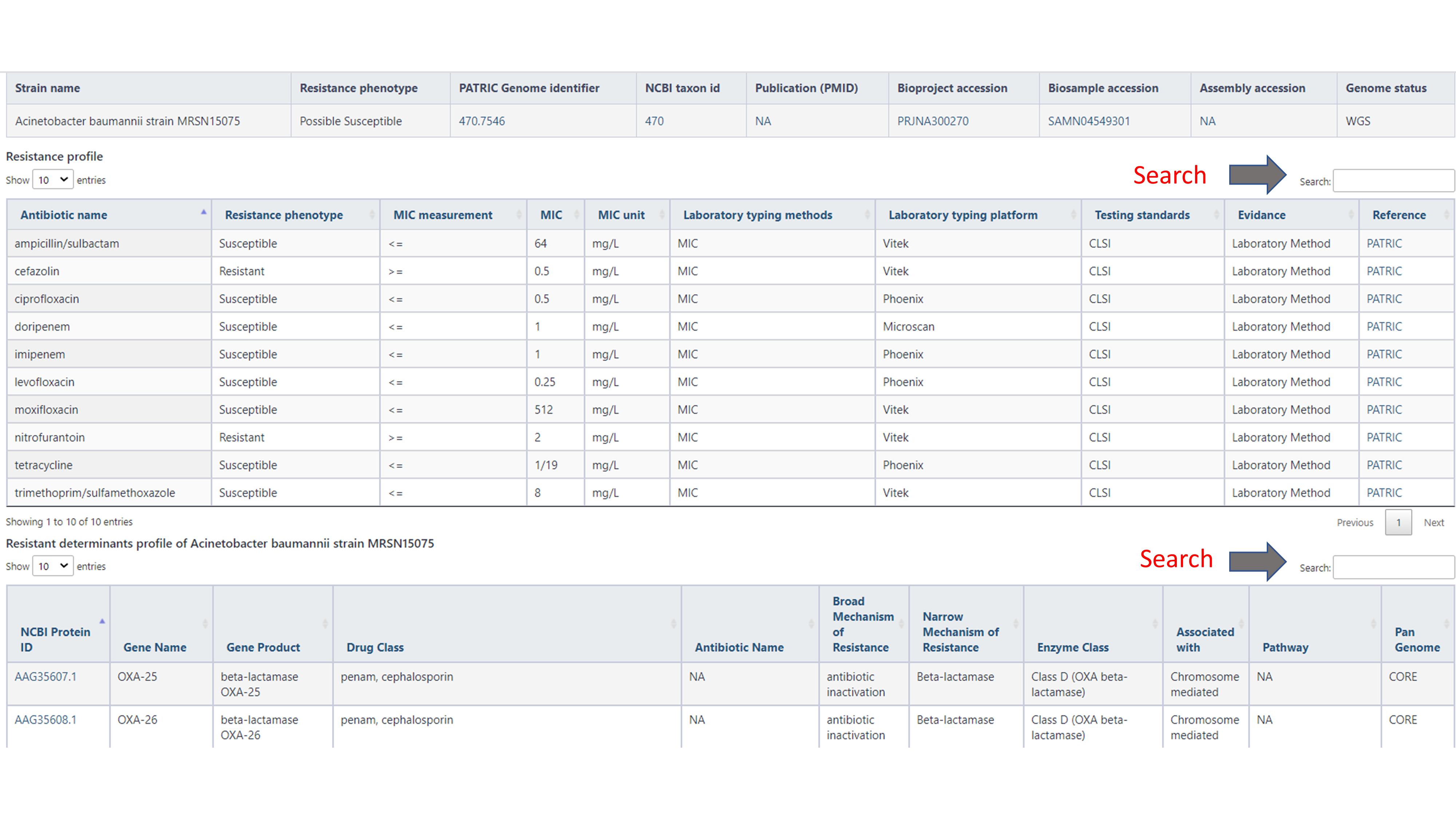 3. Browse information for antibiogram, potential targets and resistant determinants